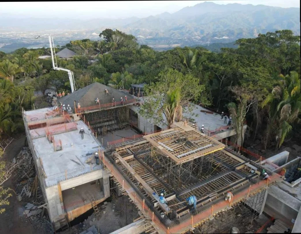 Preliminary work, foundation, structure, and grey masonry for Villa 48.